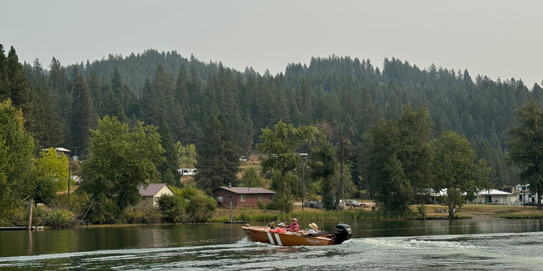 What a Great boat show, Lake Payette, McCall ID. 38 boats. few pictures from the Payette show by Bob Heneshaw and Alan Thompson. 🙃 Stared with a parade through town. Trip Sunday morning to far end of the lake. Inland Empire ASBS took 4 of the 8 awards. Great Show!