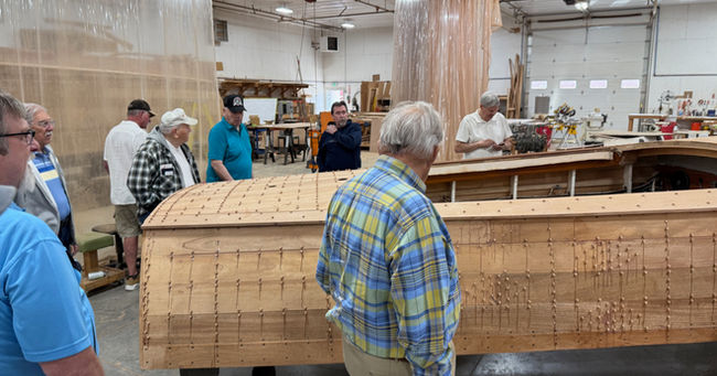 The action continued Friday morning as 10–12 members gathered for the first-ever "Boats and Brewed" coffee shop tour at DreamBoats Inc., owned by the legendary Syd Young. Fueled by Starbucks coffee and donuts, Alvin Bartholomew gave the group an exclusive behind-the-scenes look at DreamBoats’ two workshop facilities, where a team of experts is currently working on 10 boats. While DreamBoats is known for crafting custom vessels, their current focus includes restoration projects, touch-ups, and a couple of full-scale rebuilds, all aiming to hit the water next summer.