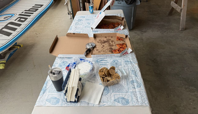The final stop of the day was Daryl Reynolds’ workshop, where we enjoyed some well-earned pizza and got an update on his ambitious restoration of a 1951 29’ Chris-Craft Super Deluxe.